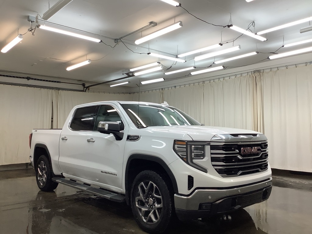 2024 GMC Sierra 1500 SLT now available in Warsaw, IN combines rugged capability with refined comfort. This low-mileage example features a powerful 5.3L V8 gasoline engine and dependable 4WD, delivering confident performance whether towing, hauling, or exploring off the beaten path. With just 20,283 miles, this SLT presents exceptional value and long-term usability compared to similar trucks on the market. Inside, premium leather seats create a comfortable cabin environment for driver and passengers. The BOSE stereo and XM Radio provide an immersive audio experience for every drive, while Hands-Free Bluetooth keeps connectivity and safety at the forefront. The included Off-Road Package enhances capability with features designed to tackle tougher terrain, making this GMC Sierra equally at home on work sites and weekend adventures. Carefully maintained and priced to move, this GMC Sierra 1500 SLT is currently offered at the best price in the area an opportunity to secure a high-spec truck without overpaying. Located in Warsaw, IN, the vehicle is ready for immediate viewing and test drive. With its low mileage, V8 power, and desirable equipment list, this GMC Sierra stands out as a smart purchase for buyers seeking a versatile, comfortable, and capable pickup. Contact us to schedule your appointment and experience this exceptional truck firsthand.
