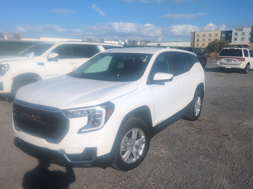 This vehicle stays safely in its lane with Lane Keep Assist. This unit features a hands-free Bluetooth phone system. It's Lane Departure Warning helps keep you in your lane. This vehicle is a certified CARFAX 1-owner. See what's behind you with the back up camera on this mid-size suv. This mid-size suv keeps you comfortable with Auto Climate. The vehicle has a clean CARFAX vehicle history report. The vehicle has a 4 Cyl, 1.5L high output engine. With the keyless entry system on this GMC Terrain you can pop the trunk without dropping your bags from the store. This GMC Terrain shines with clean polished lines coated with an elegant white finish. It is outfitted with an OnStar communication system. Set the temperature exactly where you are most comfortable in this vehicle. The fan speed and temperature will automatically adjust to maintain your preferred zone climate. This 2024 GMC Terrain is equipped with all wheel drive.