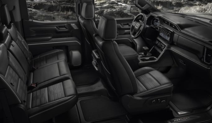 The interior of the GMC Sierra 1500 AT4 offers a luxurious and comfortable experience with a range of premium features. This truck has heated and ventilated 16-way power front seats that provide ultimate comfort and support during long journeys outside Fort Wayne. These seats also feature a massage function, allowing occupants to relax and unwind on the road.