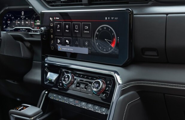 Additionally, the GMC Sierra 1500 AT4 features a 12-speaker premium audio system that delivers high-quality sound throughout the cabin, enhancing the enjoyment of music and audio entertainment.