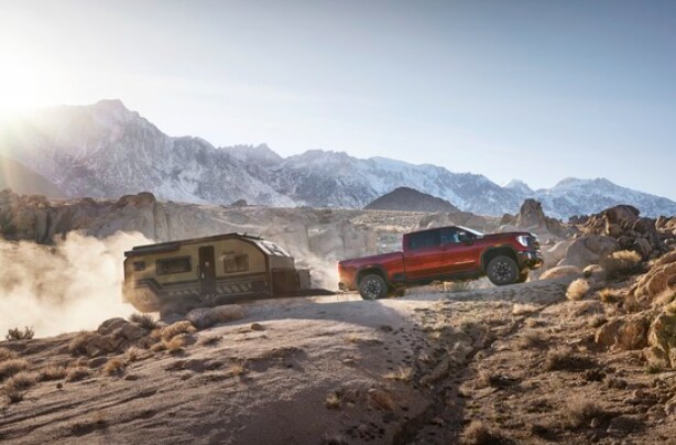 The Sierra 1500 AT4 is built to tackle the challenges of the trail with its advanced off-road capabilities. It comes equipped with serious adventure-ready equipment to take off-road capability to the next level. Some of its notable features include an AEV stamped-steel front bumper with front winch capability, an AEV hot-stamped boron steel front approach skid plate, and Multimatic™ DSSV spool-valve dampers with three separate spool valves for damping control.