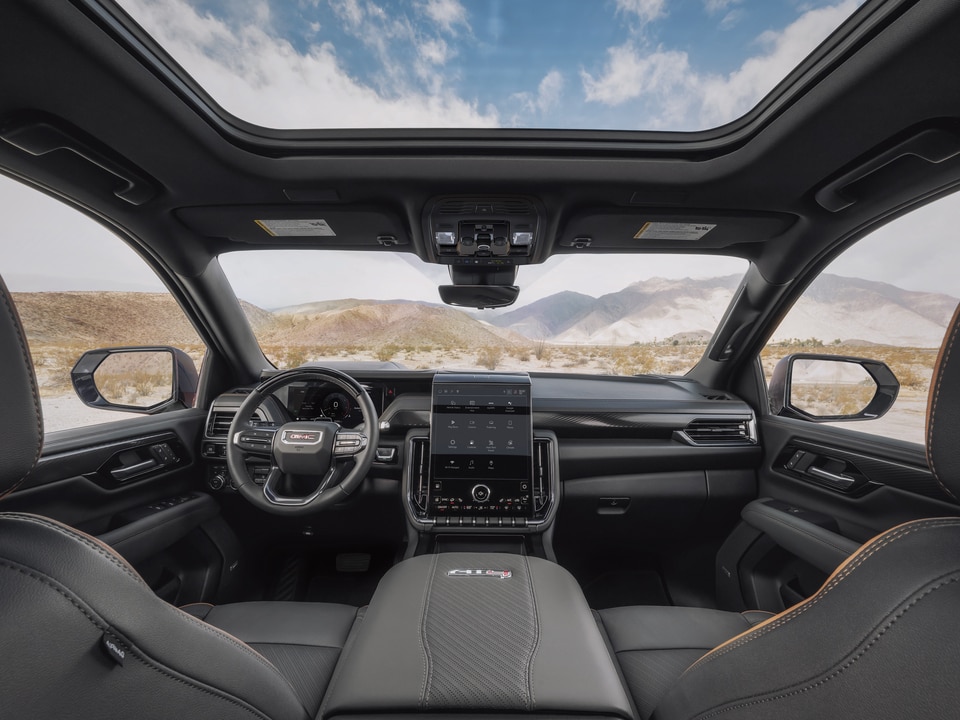 Find premium leather seating inside, heated and ventilated front seats, and a panoramic sunroof create a serene and comfortable environment for every passenger. The Yukon offers generous cargo space, with up to 122.8 cubic feet of room when the second and third rows are down. Whether you're transporting gear for a weekend getaway or need room for the whole family, the Yukon has what you need.