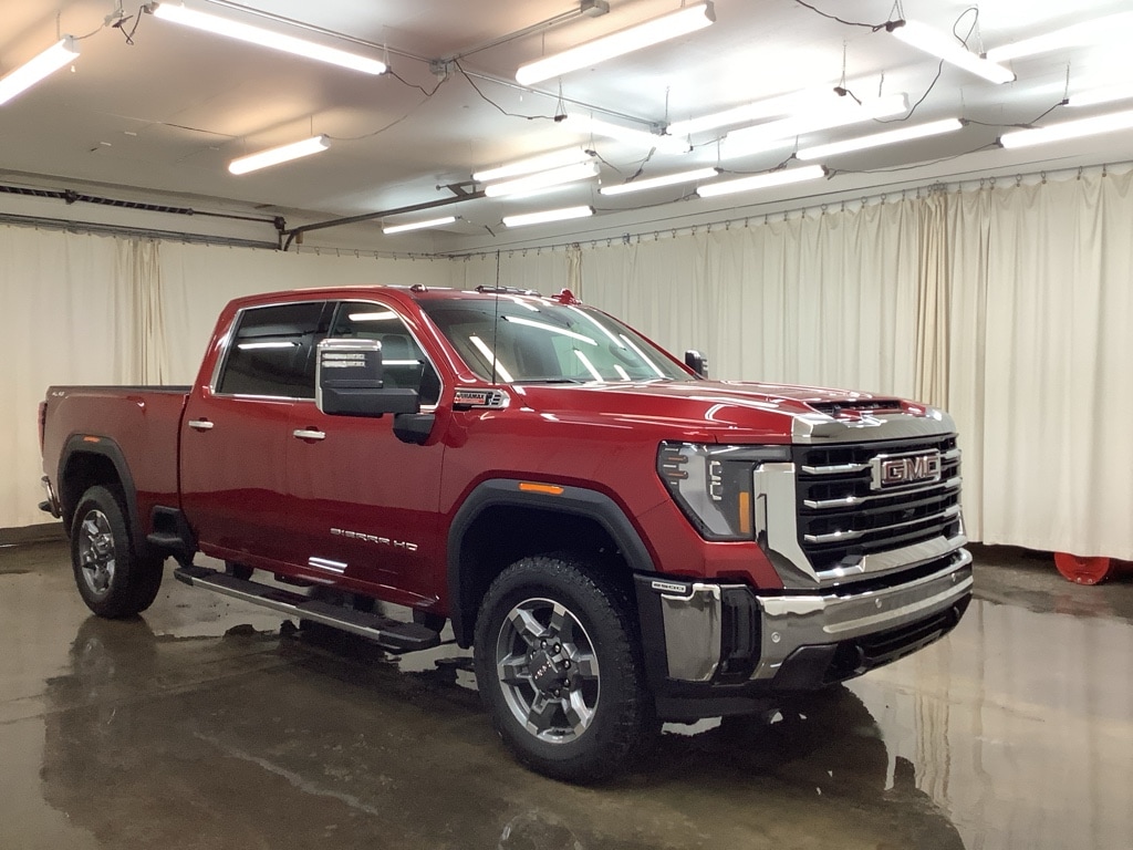 2026 GMC Sierra 2500 SLT 4WD Powerful V8 6.6L Diesel, Warsaw IN. This rugged, refined heavy-duty pickup delivers best-in-class capability and the best price you'll find in the Warsaw area. Built for towing, hauling and long-distance comfort, the GMC Sierra 2500 SLT pairs a muscular V8 6.6L diesel with 4WD confidence to tackle worksite demands or weekend adventures with ease. Inside, premium comfort meets modern convenience: a heated steering wheel keeps you cozy on chilly mornings, while Remote Start gets the cabin ready before you climb in. Stay connected safely with Hands Free Bluetooth and navigate tight spots using the Back-Up Camera. Adaptive Cruise Control adds confidence on highway drives by maintaining safe following distances, letting you relax during long hauls. This GMC Sierra 2500 SLT blends a commanding exterior stance with a thoughtfully appointed cabin, advanced safety features and durable construction for years of dependable performance. Whether you're towing a heavy trailer, transporting gear or commuting across the region, this truck's diesel torque and four-wheel traction make every mile effortless. Located in Warsaw, IN, this GMC Sierra 2500 SLT is competitively priced and ready for immediate delivery. Don't miss the chance to own a high-value, high-performance diesel pickup with the advanced tech and comfort features today contact us to schedule a test drive and secure the best price in Warsaw.