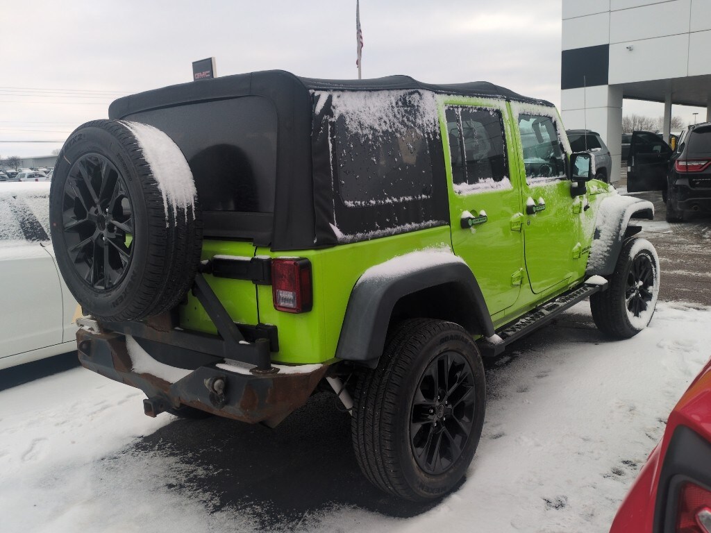 This unit keeps you comfortable with Auto Climate. The vehicle features a hands-free Bluetooth phone system. Set the temperature exactly where you are most comfortable in this unit. The fan speed and temperature will automatically adjust to maintain your preferred zone climate. This vehicle has a V6, 3.6L high output engine. This Jeep Wrangler has four wheel drive capabilities. This model shines with a refined green finish. The manual transmission in this model will give you exceptional control of your driving experience. This mid-size suv features cruise control for long trips. It has fog lights for all weather conditions. Electronic Stability Control is one of many advanced safety features on this model. The Jeep Wrangler is equipped with a gasoline engine. Anti-lock brakes will help you stop in an emergency. This mid-sized SUV is perfect for your next adventure.
