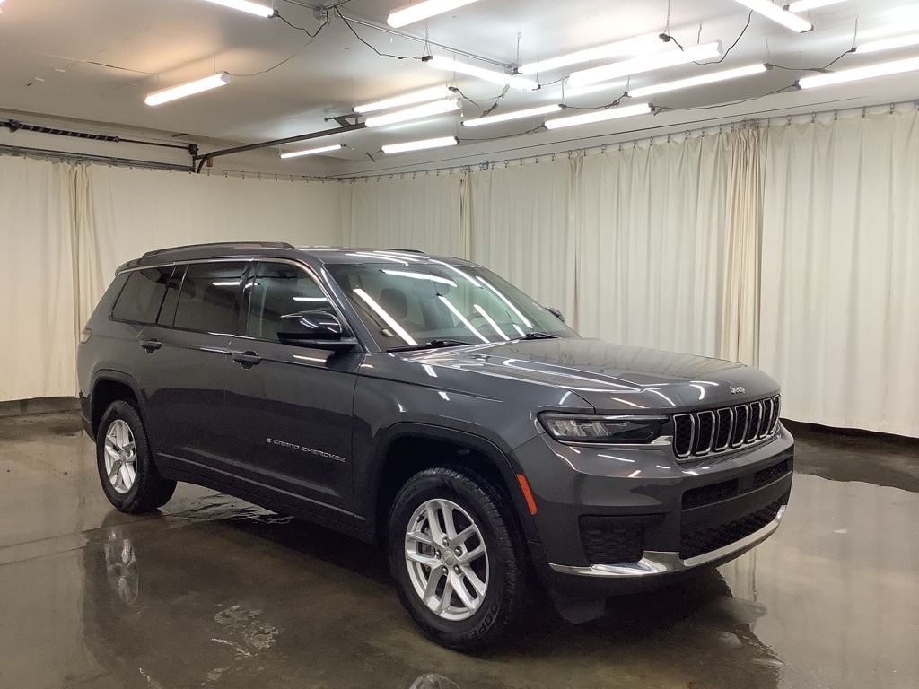 Discover exceptional value with this pre-owned 2023 Jeep Grand Cherokee L Laredo, now available in Warsaw, IN. With just 38,595 miles, this rugged and refined 4WD SUV pairs a Buick-excluding 3.6L V6 gasoline engine for confident towing and smooth highway performance. This Jeep Grand Cherokee L comes with a CARFAX Clean Report and CARFAX 1-Owner history, giving you added peace of mind and verified maintenance background. Safety and convenience are highlighted with Adaptive Cruise Control and Forward Collision Warning to help reduce stress on long drives, plus Remote Start for comfort in any season. The spacious three-row Laredo seating layout offers comfortable passenger room and flexible cargo capacity for family trips or weekend adventures. You'll find premium Jeep capability with off-road-ready 4-wheel drive, responsive handling, and a reliable powertrain balanced with modern tech and creature comforts that make daily driving effortless. Priced aggressively, this vehicle offers the best price in the area for a low-mileage, well-maintained Jeep Grand Cherokee L with these features. Located in Warsaw, IN, this Jeep is ready for immediate test drives and inspection. Contact us today to schedule a viewing and take advantage of this competitively priced 2023 Jeep Grand Cherokee L Laredo before it's gone.