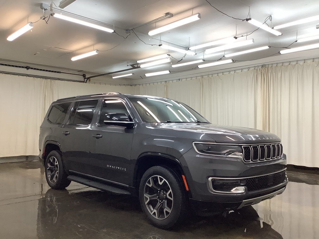 Start the Jeep Wagoneer from inside with remote start. The leather seats in this Jeep Wagoneer are a must for buyers looking for comfort, durability, and style. This 1/2 ton suv has auto-adjust speed for safe following. The installed navigation system will keep you on the right path. This vehicle is pure luxury with a heated steering wheel. This unit features a hands-free Bluetooth phone system. This 1/2 ton suv comes equipped with Android Auto for seamless smartphone integration on the road. This model offers Apple CarPlay for seamless connectivity. See what's behind you with the back up camera on this 1/2 ton suv. Set the temperature exactly where you are most comfortable in this 1/2 ton suv. The fan speed and temperature will automatically adjust to maintain your preferred zone climate. This 2023 Jeep Wagoneer comes with third row seating for extra passengers. When you encounter slick or muddy roads, you can engage the four wheel drive on the vehicle and drive with confidence.