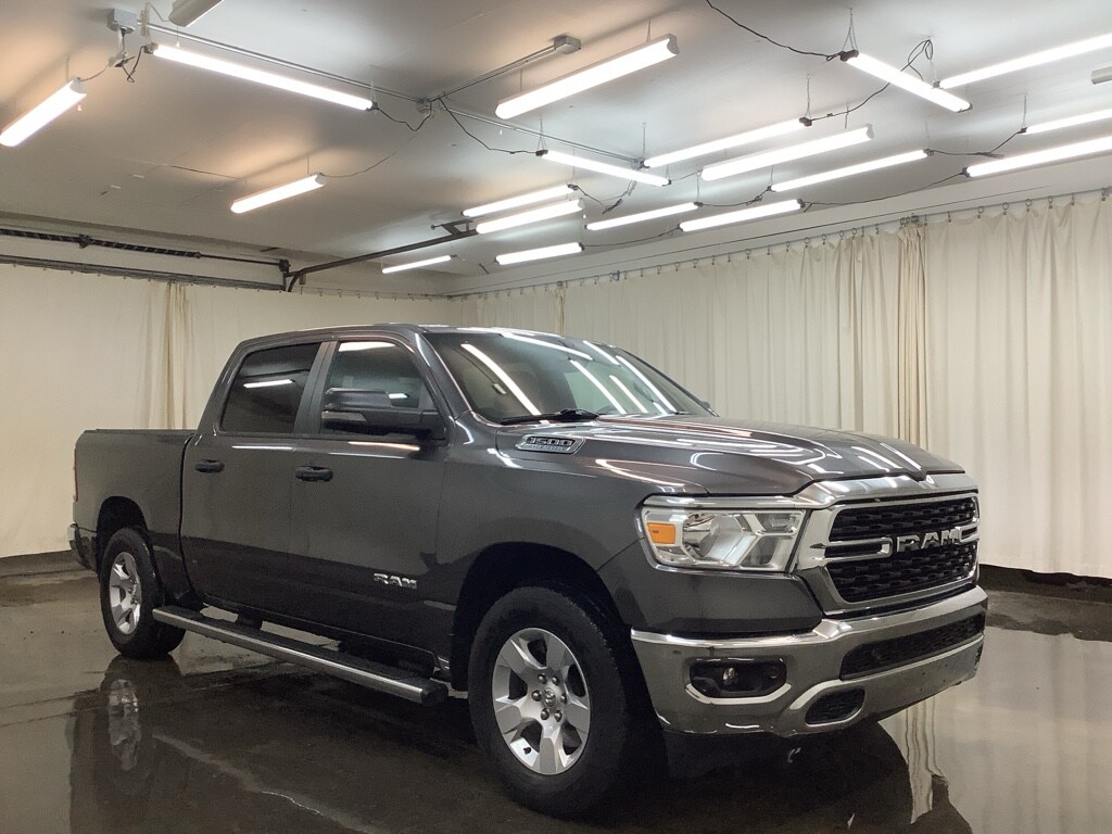 2023 Ram 1500 Big Horn 4WD, V8 5.7L, 33,042 miles Warsaw, IN. This clean, powerful pickup delivers legendary V8 performance and confident four-wheel-drive capability at the best price in the area. Whether you're towing, hauling, or heading off-road, the 5.7L HEMI® V8 provides strong acceleration and durable reliability, paired with a smooth automatic transmission for comfortable daily driving. Inside, the Big Horn blends rugged utility with modern convenience. Stay connected and entertained on every trip with Apple CarPlay and Satellite Radio, while integrated Navigation helps you reach your destination efficiently. Automatic Climate Control maintains a comfortable cabin temperature for all passengers, and Rear Parking Sensors add confidence when maneuvering in tight spaces. This Ram 1500 offers a spacious, well-appointed interior and versatile bed capacity perfect for work sites, weekend adventures, or family road trips. With just 33,042 miles, it's lightly pre-owned and meticulously maintained, reflecting strong ownership care. Located in Warsaw, IN, this truck is competitively priced to move quickly you won't find a better deal for a 2023 Big Horn with these features. Ready to drive away today? Schedule a test drive in Warsaw and experience the V8 power, 4WD control, and premium tech features in person. Best price, excellent condition, and immediate availability don't miss this Ram 1500 opportunity.